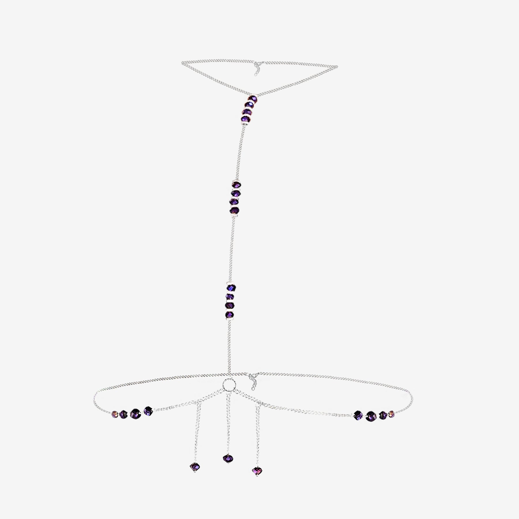 Become the center of attention with this delicate and weightless body chain, designed to enhance your allure with stunning purple crystals. Every glance will be drawn to you, making this eye-catching accessory a must-have for those who love to stand out.
