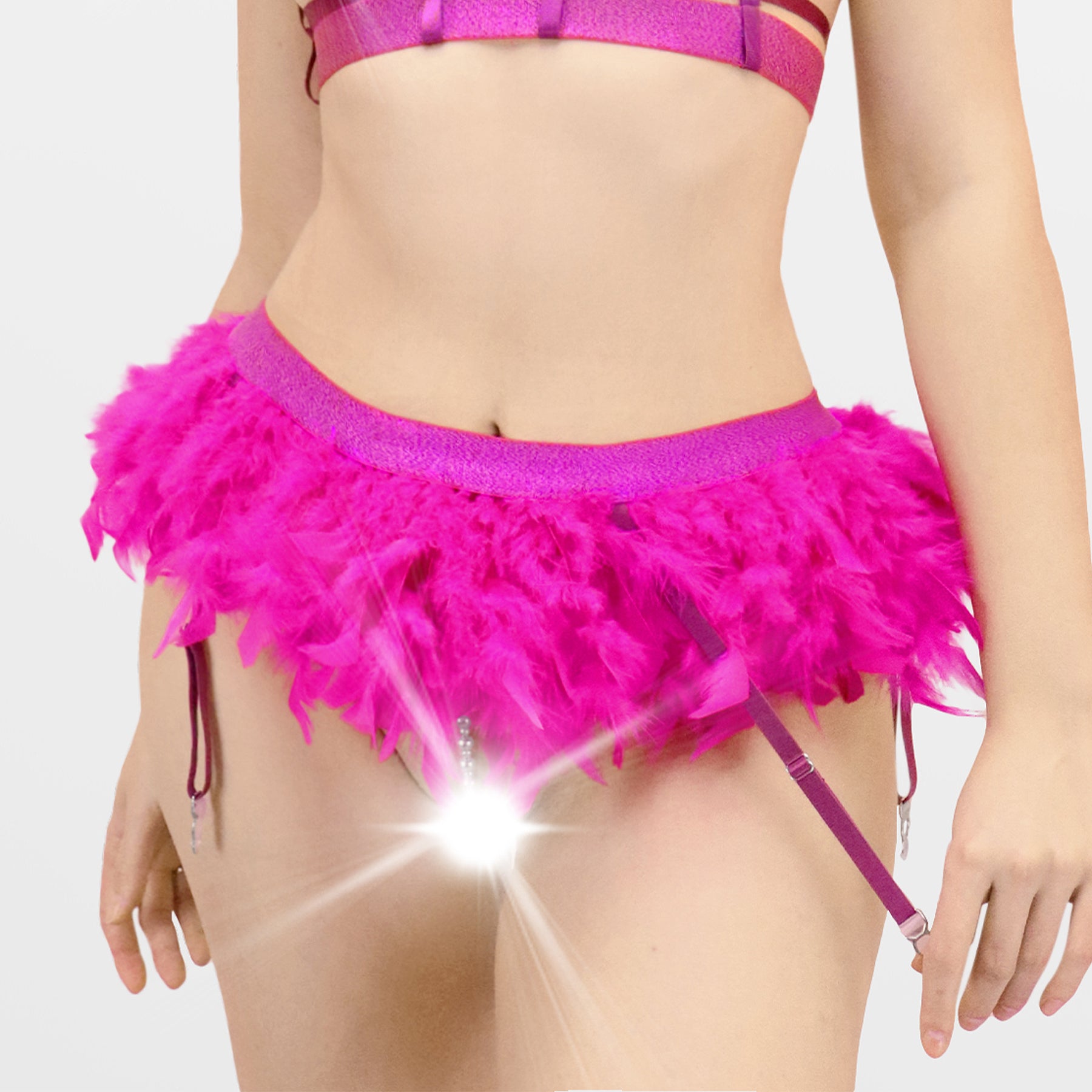 Open-Bust Feather Lingerie Set – Sensual & Bold, size L-2XL, Fuchsia